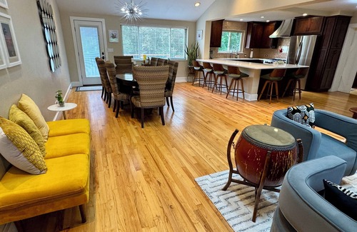 The home has a separate lock off entrance. Business Class Wifi. Coffee maker and complimentary gourmet coffee, tea. Blow dryer. Iron. Everyone loves the look. Well appointed, great design, Tasteful and Colorful furnishings.