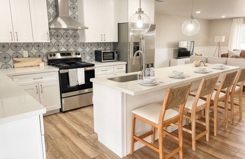 You’ll have everything you need for a perfect getaway, regardless of how long you plan to stay. Your group will love the numerous amenities such as high speed wifi, 55’ smart TV with streaming platforms, keyless entry with august lock, smart NEST thermostat with central air conditioning and heat, washer/dryer, coffee machine, toaster, oven, microwave, dishwasher, fridge/freezer, board games, cards and more.