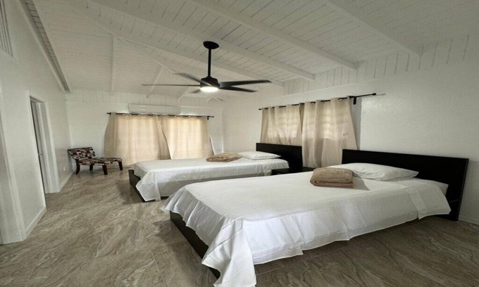 Automatic Generator! Discover this brilliant 5-bedroom gem in Water Island. This delightful house offers 1 king bed, 2 queen beds, 1 twin bed, and 2 bunk beds for a terrific stay. With amenities like WiFi, iron, and AC.. Additionally, there are 2 living rooms with queen beds for extra comfort. We look forward to hosting you at our place. Entire Villa has been recently remodeled with all new furnishings. The decor is modern, comfortable and functionable. Guests enjoy the indoor space for comfort and entertaining. Outside balconies are a favorite. Has a private feel. 5 bedroom 4 bath sleeps 15 people.