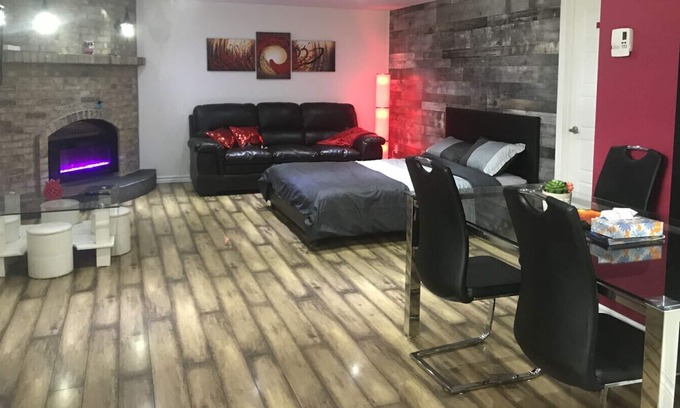 Newly renovated basement apartment fully furnished style loft + one close bedroom w/ double bed, large space including kitchen & living room w/ Queen bed, full bathroom with shower, lots of storage for your personal belongings, new appliances, electric fireplace, very well isolated and quiet, check yourself in with keypad, 50” tv with cable, free WiFi , free parking in front of the apartment