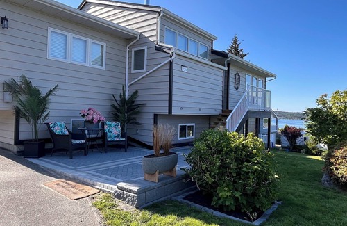 Book your stay now for 2026! Our stunning coastal retreat with breathtaking ocean views, offering serene seaside living. Enjoy panoramic sunsets from the spacious deck, or a small walk to the beach, matched by a bright, airy modern farmhouse feel, interior designed for comfort and relaxation. Located just 1 hour from Victoria, or 30 mins to Nanaimo. Nestled in a quiet neighborhood, but close to restaurants, shops and the world famous Ladysmith bakery.