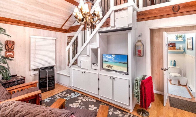 ❤️ Seldom Inn ❤️ Adorable tiny cottage w DOCK INCLUDED, close to everything! OPEN YEAR ROUND. Cozy is an understatement! Perfect getaway for small groups! Walking distance to Jack&Dos ice cream/pizza shop and Indian Head Bar & Grill. Close to all the shops & restaurants in Russells Point, Fox Island Beach, boat rentals. So much to see and do! House features HDTV w ROKU, High speed internet, Keurig coffee maker w complimentary coffee, microwave, refrigerator, oven/stove, fully furnished kitchen. This home is tiny, but full of charm and makes great use of the space! 2 bedrooms can comfortably sleep 4, w/ an additional loft area that could sleep more if you don't mind cramped quarters. Home is located directly across the street from the lake where you will find a private boat dock (dock #21). Relax inside w/ large selection of games, DVD movies, 4K TV w/ Roku (1000s of channels, movies, and TV episodes) or venture out and explore all Indian Lake has to offer! House has plenty of parking to bring your Boat/Jetski's/RV. Best location on the lake, steps from the water! Kitchen is fully furnished. Launch kayaks/canoes, go fishing, take walks, ride bikes, or just enjoy the lake views.