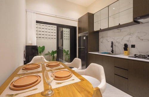 This villa in Kuta offers a tremendous escape for guests with 2 queen beds and 2 bathrooms equipped with showers and hair dryers. The living room includes a cozy sofa bed for additional space. AC, WiFi, and more amenities are provided for your convenience. Relax in this awesome retreat and immerse yourself in the enchanting surroundings. We look forward to welcoming you to our place.