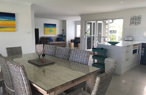 Newly renovated and a great location!! You’ll love staying at this fabulous, fully renovated, "lifestyle home " with its' enviable waterfront location. It has new interiors, a new kitchen & bathrooms and stylish open-plan living areas that flow to the spacious and undercover al fresco deck where you can entertain or simply chillax and enjoy the views. Stroll from the deck and you’re onto the grass and a new jetty where you can moor your boat for easy access to the pristine SI waterways and beaches. There’s also free use of several kayaks and life-jackets.
