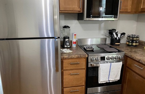 This is a spacious 2 bedroom 1 bath upper flat of a two family home with a private entrance. All new, top to bottom! Enjoy our "Ultimate Sleep Experience," with new stainless steel kitchen appliances, blazing fast Wi-Fi, and all the famous Amenities "Homes by Christopher" is known for.