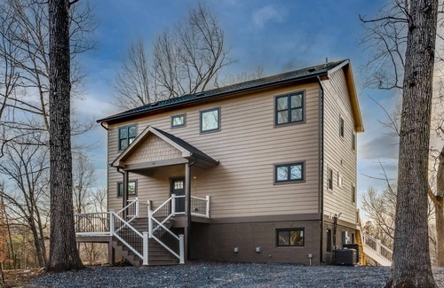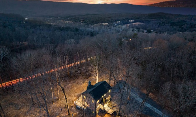 The Hilltop Station – A Stunning Cabin Retreat! Perched high on a hill. This brand-new, 3-story, 4-bed, 4-bath cabin offers a luxurious escape near Luray Caverns (10 min away). With cathedral ceilings, stylish furnishings, and a full office, it’s perfect for large families. Kids love the daily passing train (11 AM–1:30 PM) for a fun, front-row experience! After hiking, rafting, or exploring, unwind in this serene retreat with breathtaking views.