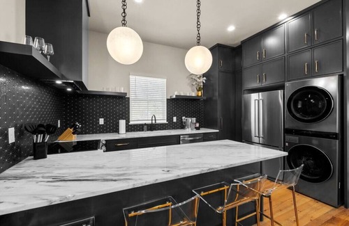 Our 2 story grand home features 1,800 square feet with a duplex style setup with a shared foyer. Each unit is truly unique offering 2 bedrooms & 2 full bathrooms on the first floor. The additional 2 bedrooms & 2 full bathrooms are located on the second floor in the second unit. Each unit has its own fully stocked kitchen and full size stackable washer & dryer. This one-of-a-kind layout is perfect for everyone in the group to have their own space & privacy. You will have access to the entire home & both units.