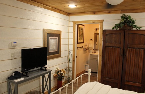 New, detached from main house, in historic neighborhood. Sleeps 4. One bedroom private suite with living room, sofa bed, and kitchenette. Beautifully furnished, Central heat and A/C, bathroom. Internet access included. TV, refrigerator microwave and table settings within. Private driveway parking on property in quiet, safe neighborhood. Minutes from downtown Weatherford. Restaurants and shopping very close by. Easy access to major highways. No smoking , no pets.