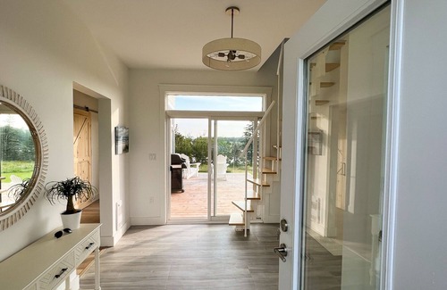 This designer waterfront cottage is newly built (2022) on the Hope River in a beautiful and serene 1.5 acre setting of rolling countryside - very private, yet conveniently located between Stanley Bridge and Cavendish. It’s just a 10 minute drive to the gorgeous Cavendish beaches (so you’re close to the ocean) and you can enjoy beautiful views of the sand dunes from the waterside outlook deck and bonfire pit area.