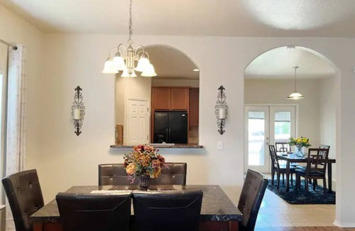 This elegant 3 bed 2 bath home is located in a peaceful, family friendly neighborhood. It is the perfect place to relax, celebrate, and make memories in San Antonio. Only 5 mins from Lackland AFB BMT, and easy highway access to everything great about San Antonio: 12 mins from SeaWorld, 20 mins from Six Flags Fiesta Texas, 18 mins from Riverwalk, Alamo, Botanical Garden and all downtown attractions. Additionally, extremely close to Walmart and HEB for groceries. You will feel at home!