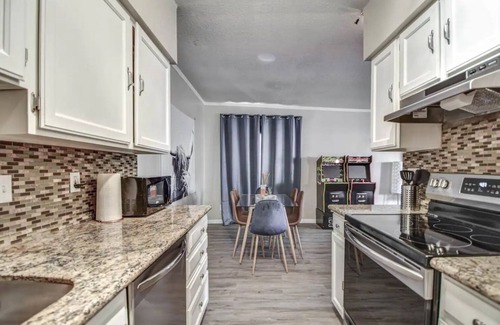 INSIDE --> Professionally decorated in a unique style, you'll find find all the comforts of home, and even a few surprises (check out those arcade games!)