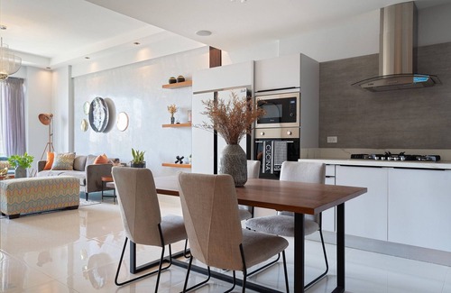 The apartment has incredible city views fully furnished with a 55" HD flat smart TV in the living room, with king sized bed in the master bedroom and a studio with sofa bed, 20 mb Internet and kitchen amenities, also from here you can walk to some of the best restaurants, spend the afternoon shopping in BLUE MALL or enjoy our pool with city views.