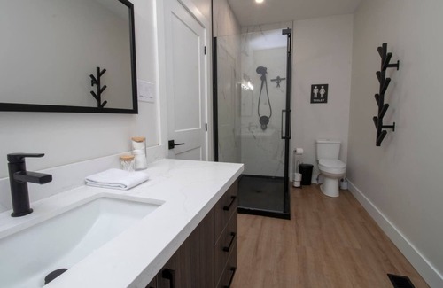 Stay refreshed in our 2 clean and functional bathrooms. One bathroom features a shower, toilet and sink, and the other features a bathtub, toilet and sink. Shampoo, Conditioner, Body Wash and soap are provided.