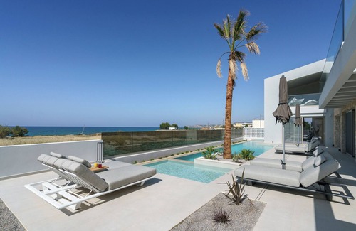 Newly built Beachfront Villa with Heated Pool, Jacuzzi/Hot Tub and Playroom is located in Sfakaki. Newly built Beachfront Villa with Heated Pool, Jacuzzi/Hot Tub and Playroom provides accommodation, featuring Pool, View, Hot Tub, among other amenities. This Villa features Pool, View, Hot Tub, to make your stay a comfortable one.