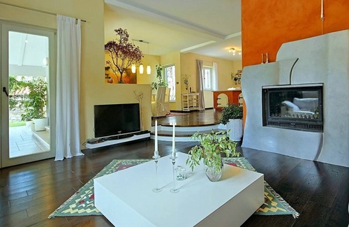 Villa Rupena is a newly built comfortable house with swimming pool located in a quiet residential area of Buzet in central Istria. The house is situated 39 km from the sea and it has a well maintained garden near which is a beautiful green wood. The house was built and furnished in 2009 and is equipped with air-conditioning and high quality furniture. The guests of the villa have on their disposal an outdoor swimming pool of 24 sqm, spacious covered terrace with sitting set, partially enclosed garden with maintained lawn of approximately 1000 sqm, barbecue, private parking and a garage for two cars.