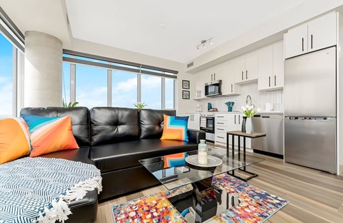 This beautiful condo is located in the brand-new Station Park Towers, perfectly situated in the midtown district between Downtown Kitchener and Uptown Waterloo. Enjoy stunning city views from your perch on the 21st floor. With a King-sized bedroom and a sofa bed in the living room, this unit comfortably accommodates up to 4 guests. Ready for an unforgettable stay? Book your getaway today!
