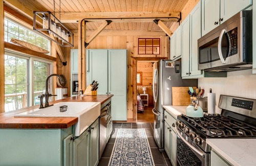 Newly constructed and set in a peaceful, wooded area on Lake Winnipesaukee, Fish Cove Lodge is a 1-bedroom plus loft, 2-bathroom post and beam home that sleeps up to 4 guests. Only 10 minutes from downtown Meredith, you'll enjoy the quaint and scenic charm of this New England town known for its local winery and live theatre. Guests will love this home’s lake access and outdoor gas firepit!