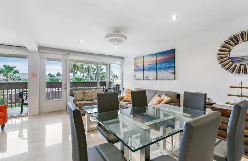 Newly decorated condo in beautiful beachfront resort is located in South Padre Island.