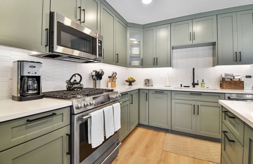 • Kitchen: Fully Equipped Kitchen w/ Stainless Appliances, Gas Range & Beverage Refrigerator