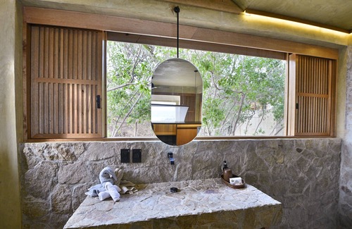 In the newly opened Suite del Mar you can relax and disconnect in a quiet and elegant apartment on Agua Blanca beach, right between Mazunte and Puerto Escondido - both 20 minutes away. It is a paradise facing the sea, surrounded by palm trees and mangroves, and with magical views. The house is built with natural stone, palm roof and with a spectacular design. If you rent the Sunset Suite, second floor, you have access to a top roof jacuzzi