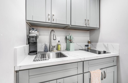 Fully Equipped Kitchen: The kitchen features an induction stove, ideal for preparing your favorite meals. You'll find all the essentials needed for cooking and dining during your stay.