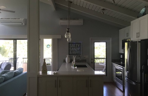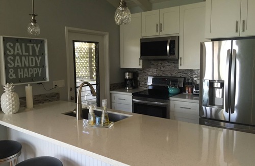 This beautiful townhome has been completely renovated. My daughters and I have decorated our home in what we call "beach chic"! It is cool and comfortable and sparkly! The kitchen has been completely remodeled with new cabinets, quartz counter tops, and all new appliances. All three bathrooms have also been updated with new cabinets, quartz counter tops, new showers, sinks, and toilets. There are 3 brand new separate AC units, along with new ceiling fans, in the Living Room, and in each Bedroom.