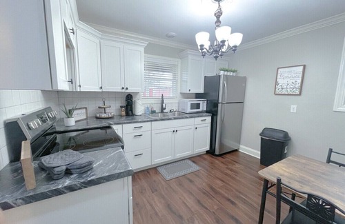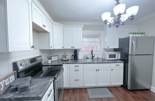 Step into the comfort of Wanamaker Haven, one half of a beautifully remodeled duplex nestled in a serene neighborhood. This 2-bedroom, 1-bathroom abode offers a delightful blend of modern amenities and homely warmth, perfect for both leisure and business travelers. Revel in the spotless space, adorned with stunning decor and brand-new, high-quality furniture for an unparalleled relaxing stay.