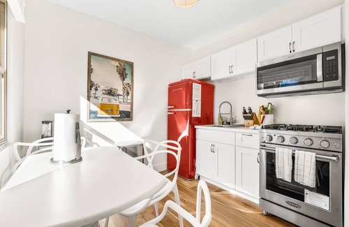 Discover the ultimate Pacific Beach getaway! Our enclave offers four chic studios with king beds, pull-out couches, kitchens, and bathrooms. Additionally, a two-bedroom home features a king bed, two queens, and a pull-out couch. With a combined capacity for 24 guests, it's perfect for group retreats. Enjoy the vibrant Pacific Beach scene, just moments away from beaches and attractions. Book now for a stylish and comfortable stay in San Diego!