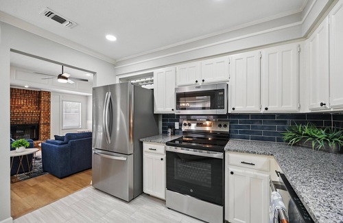 This beautifully remodeled 3 bedroom, 2 bath, pet friendly home comfortably sleeps 8, perfect for groups and families. The home has brand new furnishings and appliances with available wifi throughout. The large backyard boasts a tranquil private pool, perfect for some fun in the sun. The kitchen is fully stocked and includes a Keurig coffee machine. The neighborhood is quiet and is an easy drive to both Dallas and Forth Worth.