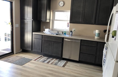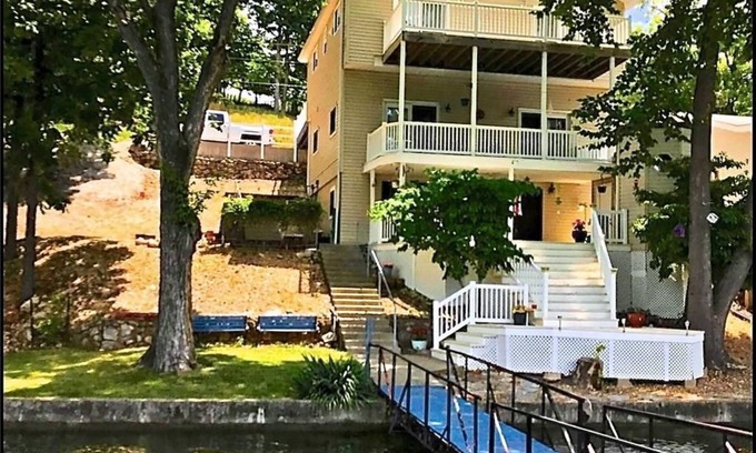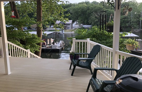 Our 2500 sq. ft. family lake house is the perfect getaway for YOUR family! This recently renovated lake front home is a 6 bedroom, 5.5 bath house located in a NO WAKE, deep cove at the 27th mile marker! It is a convenient 12 steps from the deck to the dock. Dock has been expanded to accommodate your boat & kayaks! There’s a paddle boat for the kids. Fishing is great in this little cove and the boat ramp is right there too!