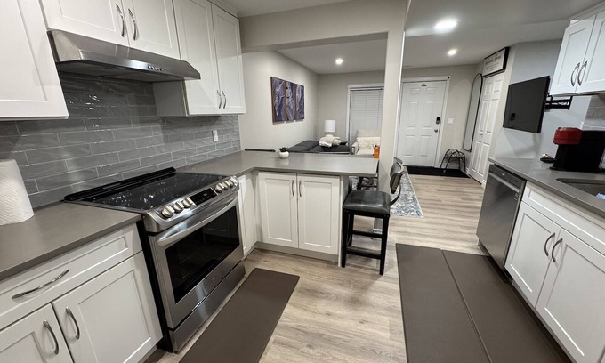 Fully renovated suite with 2 bedrooms, brand new quartz countertops, range/fridge/dishwasher, latest LG washer/dryer stacked combo.
