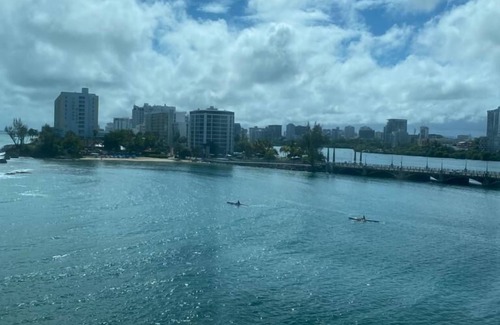 Thise Ocean Front Studio offers incredible Ocean and Beach views, as well as the Condado Lagoon and city in one of the best urban waterfront locations. Studio is located next to the Caribe Hilton hotel and walking distance to 2 popular Beaches, water sports at Condado Lagoon, 20 + Restaurants, Shops and Old San Juan. Easy access to the Historic 17th Century San Cristobal fort a the base of the complex featuring events and historical tours. 5 Minutes away from new entertainment center featuring bars, restaurants, events and the famous Toro Verde zip line and store.