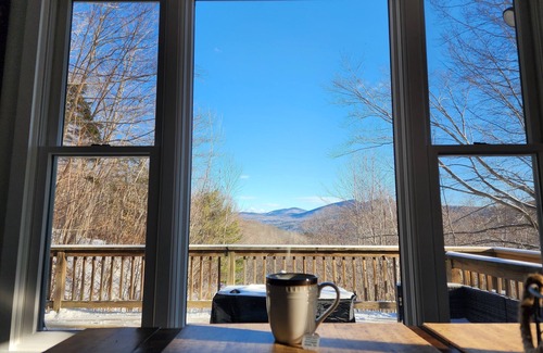 Unwind at this cozy Chalet retreat in Bartlett, recently renovated with new floors and kitchen cabinets. This 2-bedroom top unit apartment sleeps 5 with plenty of seating for dinning inside and out. There’s a large deck with a propane fire pit and L-couch. Take in the beautiful mountain view and serenity of the surrounding woods on the 2-acre lot. With Wi-Fi, AC, both a propane fireplace inside and electric heat with temperature control in each room, you are sure to have all the comfort and amenities of home. Login to your streaming accounts with the Roku and sit back in the reclining couch after a long day on the slopes or hiking. Property does have outdoor Ring camera. Close proximity to ski mountains, 2 mi from Story Land, and 5 min from a plethora of great restaurants in Bartlett and Jackson. Plenty of hiking trails close by as well as Jackson Falls.