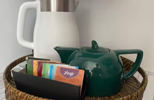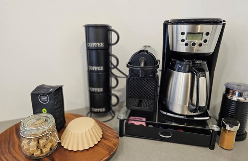 For dinner, treat your guests to a gourmet meal in our beautiful quartz, fully-stocked chef's kitchen equipped with gas range and bright dining area accommodating up to 8 with our expandable dining table. Or prepare and eat in our outdoor dining area equipped with BBQ and deck-top herb garden! Keep prep simple using the air fryer, blender, & cookware provided. Not in the mood to cook? Enjoy fine dining, convenient take-out, or order in — Sidney House is in the heart of all amenities and you'll find the best recommendations in our welcome package!