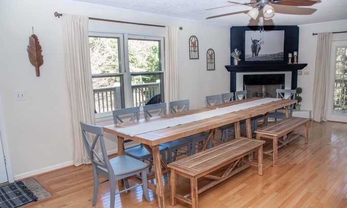 This beautiful modern farmhouse is conveniently located in the heart of Maggie Valley. The home is perfect for large groups or families looking to escape into the mountains.