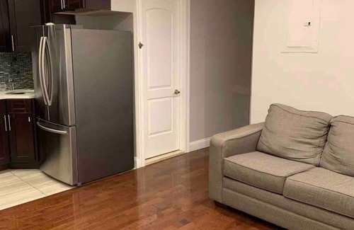 Newly renovated one-bedroom apartment on the first floor of a private house. Just minutes away from JFK, LGA and a 2 minute walk to public transportation! Close to the historic Neirs Tavern, Resort World Casino and Forest Park. Private Entrance, kitchen, full living room with air conditioning, fireplace . High-speed WiFi , Roku, Netflix and a sleeper sofa!