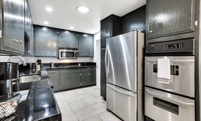As you settle into this 5-bedroom, 2-bathroom rental, you'll find a living room, a fireplace, air conditioning, and a desk. Prepare a home-cooked meal in the kitchen, complete with an oven, a stovetop, and a dishwasher, as well as an ice maker, a microwave, and cookware. And you can even travel light because you'll have a washing machine.