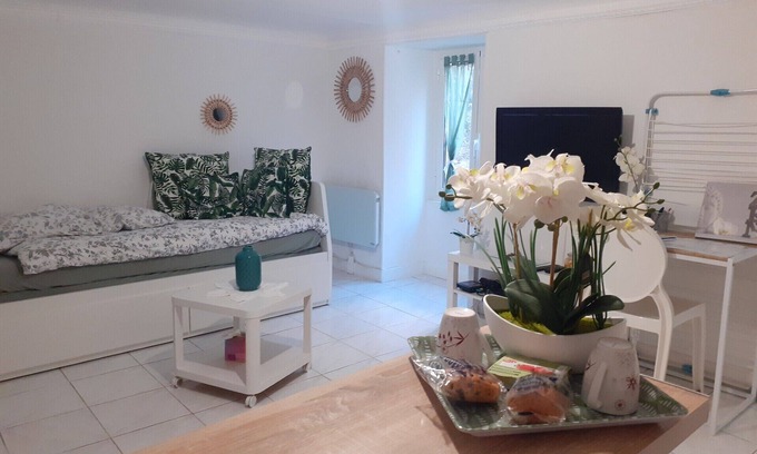 22m² studio equipped with a sofa bed for 2 people, a new American kitchen (microwave, induction hob, fridge, kettle, coffee maker) and a bathroom with heated towel rail.