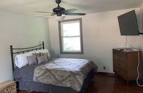 Relax and unwind at our spacious and cozy studio apartment. Dedicated to making your stay a great one Located on the main homestead. Private coded entrance, includes full kitchen, washer, dryer, queen size bed, private newly renovated bath room. Big screen Roku tv, located on 25 acre goat farm with Donkeys plenty of walking trails! ATV trails with mud pits, flowing creek with plenty of wildlife, bonfire area, pet friendly. No smoking.