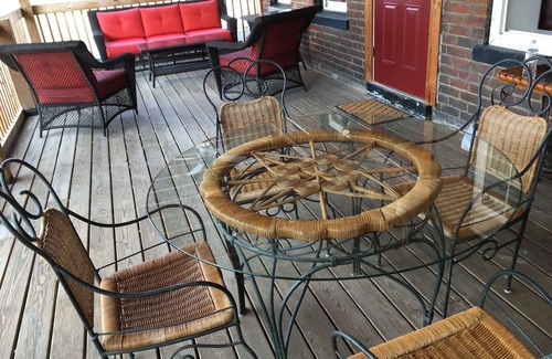 In the center of Newport, and just a short walk to downtown Cincinnati is where you'll find your ideal place to stay. This charming apartment offers a cozy and comfortable stay, just a short walk from the top attractions like the Newport Aquarium and Newport on the Levee. Enjoy the convenience of a fully stocked kitchen, complete with a stove, oven, refrigerator, microwave, coffee maker, and all the dishes and utensils you need to whip up delicious meals. Unwind in the living room, where you can catch your favorite shows on the smart TV with satellite or cable channels. Stay connected with the provided WiFi. When it's time to relax, retreat to the bathroom, where you'll find towels, basic soaps, and a hair dryer. Keep your clothes fresh with the iron and ironing board. Stay comfortable year-round with the air conditioning and heating, and enjoy the plush linens. Outdoor enthusiasts will love the outdoor furniture, perfect for soaking up the sun or enjoying an evening breeze. With free parking available for guests directly behind the inn you can easily explore all that Newport has to offer during your stay.