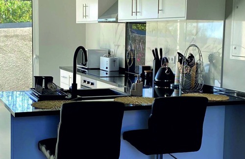 The kitchen is well equipped, with a hob, fridge, oven, microwave, coffee machine and more. There is high-speed Wi-Fi and the living room has a huge flat screen TV with cable channels.
