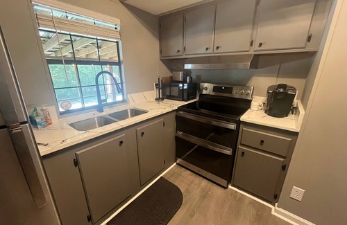 Welcome to Kibler Valley and a newly renovated space we like to call “Next to Heaven on Earth.” Enjoy sitting on the screened-in front porch, watching and listening to the river, feeling the crisp air of Fall, and seeing the leaves change colors on the beautiful mountain views. If it happens to rain, enjoy the sound on the red tin roof. Enjoy year-round trout fishing of stocked and native fish in the upper Dan River, below the powerhouse. In the evening, catch the game or race on the big screen on the porch as well. This is a great place for a weekend get-away for two or bring the kids. It’s also great for just the guys and a weekend of fishing, or just the girls and a visit to Floyd, Chateau Morrissette, or Mt. Airy, all just a short drive away. The new renovation includes all new flooring, kitchen appliances, granite countertops, and tile walk-in shower. Cell service and High-speed internet through Spectrum is at your fingertips for a conference call or Zoom if you want to start the weekend a day or two early or extend through the first of the week. This property is beside the Vrbo listing the Kibler Kabin, also known as "Heaven on Earth."