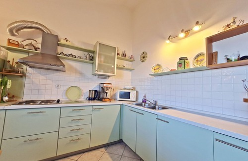 The apartment with the terrace and a beautiful green garden is located in the vicinity of the quiet town of Omiš. The city is located at the mouth of the river Cetina, in the heart of Dalmatia and is one of the most beautiful cities in all of Croatia. Omiš is only 25 km from the city of Split. The place is ideal for families with children because of its pebble and sandy beaches. You can enjoy long walks in the nature or rafting on the river Cetina.