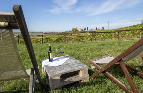 Discover the beauty of Tuscany while staying at the Agricultural estate ''Corte in Poggio''. Surrounded by vineyards, this stunning property boasts nine apartments, perfect for a relaxing vacation rental. Located just 6.5 km from the centre of Cerreto Guidi, 12 km from the centre of Vinci, and 45 km from the centre of Firenze, this estate is in a sunny position on top of a hill, offering breathtaking views of the countryside.