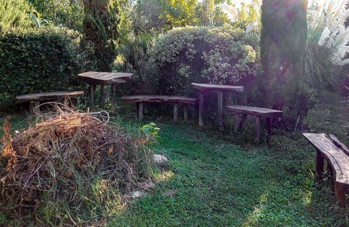 This charming establishment is set on a slope, 13 km from the sea, and surrounded by the serene countryside. Guests can enjoy the shared terraced garden spanning 2,000 square meters, adorned with beautiful plants and trees, as well as a lush meadow. The seasonal outdoor swimming pool (10 x 5 m, depth 120 cm) is available from June 1st to September 30th. Outdoor amenities include a shower, patio, garden furniture, a barbecue area, and a cozy fireplace.
