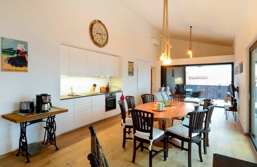 The penthouse features an open kitchen with an oven, dishwasher, 4 ceramic glass hob hotplates, toaster, kettle, freezer, and electric coffee machine. It is equipped with air-conditioning and forced-air heating for your comfort. The spacious 30 square meter balcony offers balcony furniture and a marvellous panoramic view of the sea. Additional amenities include mosquito nets and free WiFi internet access.