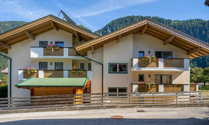 Apartment block "Rosa". 11 apartments in the property. 150 m from the centre of Mayrhofen, 5 km from the centre of Zell am Ziller, 4 km from the centre of Finkenberg, in a central position. For shared use: property 500 m2, terraced garden with plants. In the house: lift, storage room for skis, central heating system, ski boot dryer. Breakfast and half board possible (extra). Parking (for 15 cars, limited number of spaces), communal covered parking at the house. Supermarket 1 km, railway station "Mayrhofen" 700 m, outdoor swimming pool, indoor swimming pool 30 m. Golf course (18 hole) 20 km, mountain railway 500 m, ski lift 2 km, ski bus stop 30 m, ski school 400 m, cross country ski track 500 m. The owner does not accept any youth groups. Please note: the owner lives in the same residence. Pets allowed in summer only. 1 parking space per apartment. Premium partner.