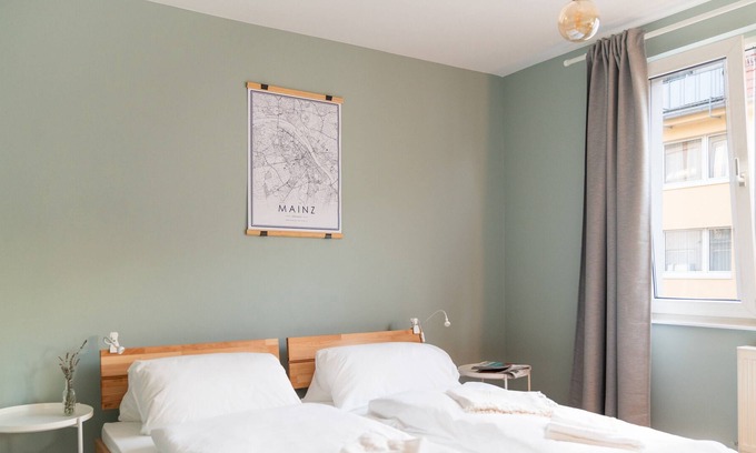 Welcome to a prime location in Mainz: The apartment is located in the heart of the Neustadt district, surrounded by many bars, cafes and restaurants, but is still quiet. Mainz Main Station is only 400m away, the Gartenfeldplatz is not 300m away. In the immediate vicinity only 100m away is a supermarket, a drugstore, and many other shops.