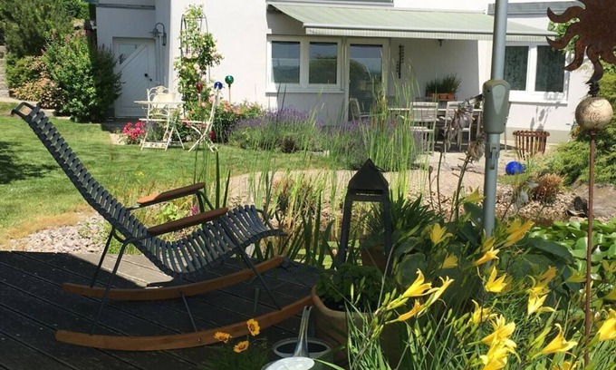 Our dream holiday apartment with a spacious garden, beautiful seating areas, 30m² garden terrace with awning at the Koi-Teich. Guest car park at the house. "Three Worlds Card" your advantage in the Schwarzwald. Living room with a cozy sofa, free-w-lan, flat screen TV/stereo/web TV, Kitchenette with dishwasher, ceramic field, microwave, café machines, Bedroom with box spring bed and a cozy reading corner. Shower / toilet / washing machine