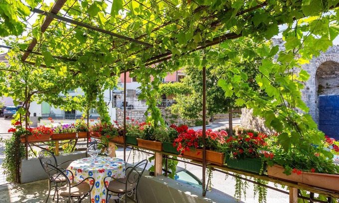 This traditionally furnished and well-equipped holiday apartment is located in the centre of the historic town of Kastav. It extends over two floors and the terrace offers a view of the old Crekvina square. The square often serves as a stage for various events, such as concerts. The old town centre of Kastav is a popular tourist destination due to its exceptional cultural and historical heritage. Restaurants, souvenir shops and art galleries can be found in the immediate vicinity. The nearby town of Matulji, also known as the gateway to the Opatija Riviera, is known for its bell-making tradition, which is on the UNESCO list of intangible heritage. In the local taverns you can try jarbola, a wine with a specific flavour made from the local grape variety. Fans of active holidays can look forward to numerous cycling and hiking trails that lead them into the surrounding forests. One of the interesting ways to explore the beautiful natural and historical heritage of the Kastav region is horseback riding. We definitely recommend a day trip to the nearby mountain and nature park Uka, whose highest peak Vojak offers a fantastic panoramic view of Kvarner and inland Istria. Enjoy well-maintained hiking and cycling trails, nature trails and promenades, the most famous of which are the Slap promenade and the Vela Draga nature trail. You can enjoy various sporting activities such as hiking, free climbing, mountain biking and free flight. Be sure to visit Opatija, the centre of cultural events, which includes numerous concerts and festivals in the summer.